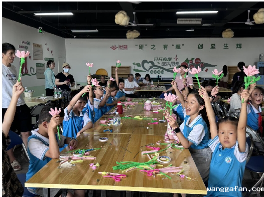 扭扭棒荷花的制作环节更是将活动推向高潮。志愿者讲解了制作技巧后,孩子们用五颜六色的扭扭棒创造出形态各异的荷花。“出淤泥而不染的荷花精神值得我们学习。”10岁的王同学一边组装花瓣一边说。