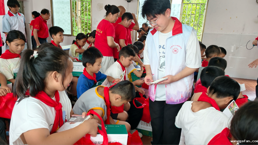 物资发放现场,志愿者将明信片、图书、文具、体育用品逐一送到孩子手中。孩子们捧着礼物,纯真的笑容绽放在脸上,眼中闪烁着对知识的渴望。