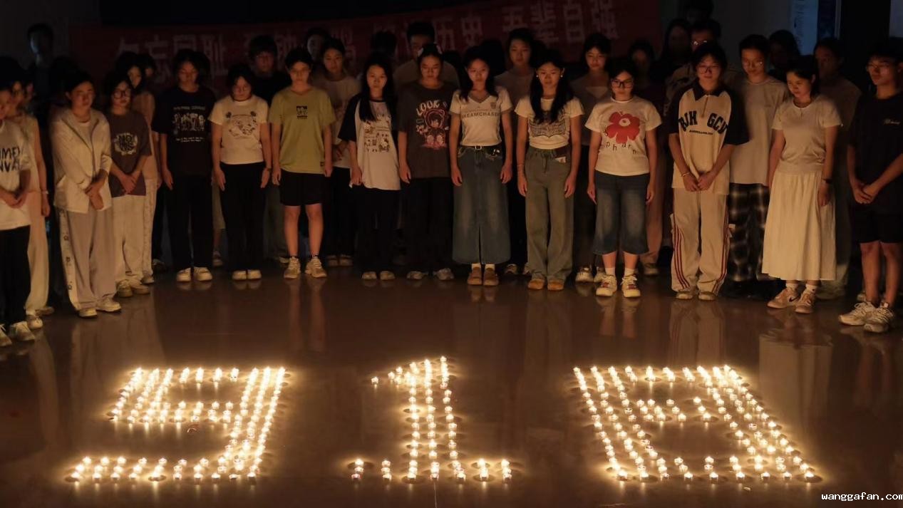 活动开始前,同学们依次领取蜡烛,将其有序摆放成“918”字样。点点烛光在现场渐次亮起,如同穿越时空的星火,映照出对历史的敬畏。随着烛光铺满“918”字样,全体人员围绕烛光肃立,为在九一八事变中遇难的同胞、为抗击日本军国主义侵略而英勇献身的先烈默哀三分钟。现场静穆无声,唯有烛光摇曳,诉说着对先烈的缅怀与对苦难的追思。